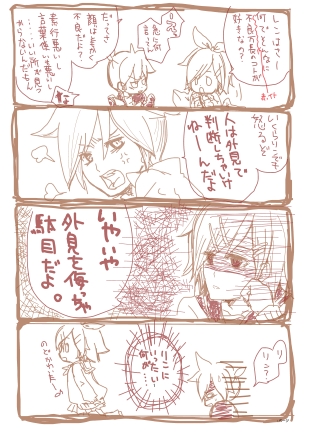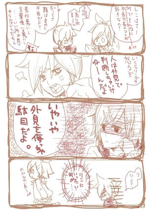 この間次に出すマンガの内容を決めてたんですが、いやぁ~ホントいろんな案が出まして。その内の1つが上の絵の獣化です。しかも幼稚園に通ってる設定で(笑)相方の飛鳥さん曰く「萌をつめこもう」ということらしいですvしかしなぜかガクポだけはナスのかぶり物って設定でした(爆!・・なぜ彼だけよりのよって野菜なのかv